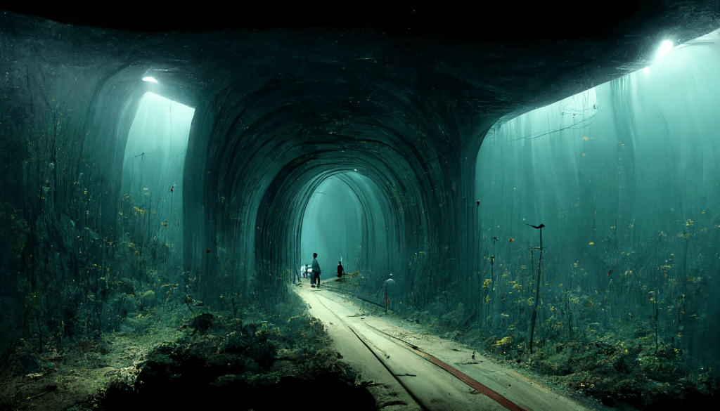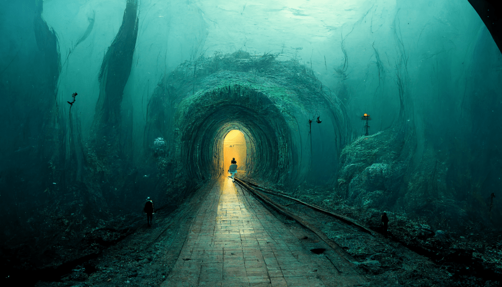 Entering an undersea tunnel as if exploring a mysterious sea world.
