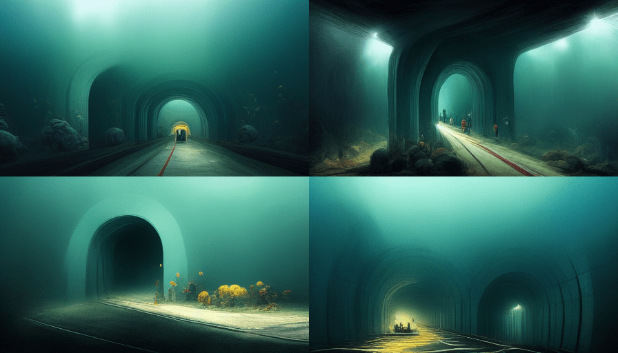 It ends with exiting the undersea tunnel after exploring the mysterious sea world.