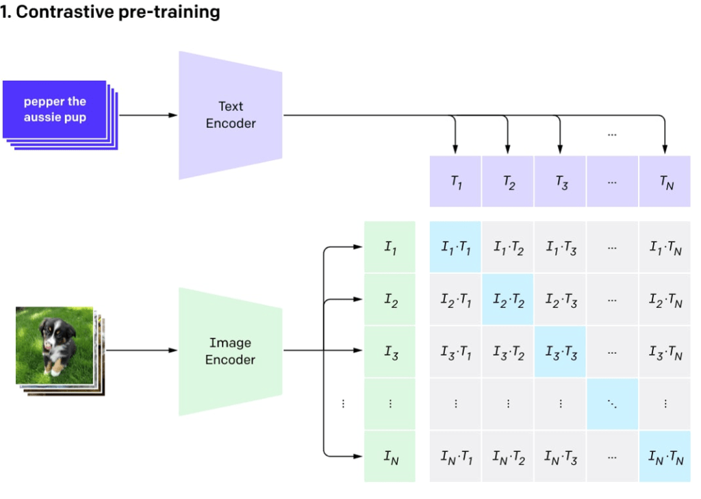 In this approach, the model is presented with pairs of data elements, such as images and text. For each pair, the model must learn to recognize when the elements are related (positive pairs) and when they are not (negative pairs). By adjusting its internal representation of the data, the model learns to generate high similarity scores for positive pairs and low similarity scores for negative pairs.