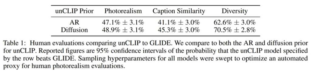 The model powering DALL·E 2 is called unCLIP. Although humans slightly favor GLIDE over unCLIP in terms of photorealism, the difference is minimal. However, unCLIP is highly preferred over GLIDE in terms of image diversity, which is one of its key advantages. This updated model offers both high-resolution image generation and a diverse range of creative outputs.