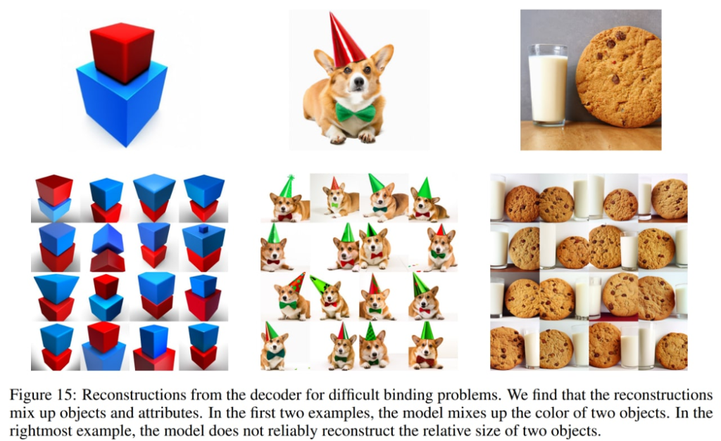 Attribute binding problem: This issue may occur because CLIP embeddings do not explicitly bind attributes to objects, causing the decoder to mix up attributes and objects when generating an image.