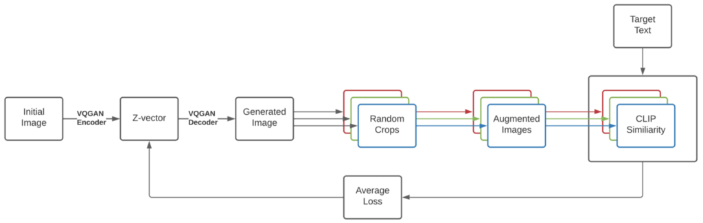 As the VQGAN generates images, the CLIP model assesses their similarity to the text prompt and provides feedback to refine the output further. This iterative process continues until the generated image closely aligns with the given text description.