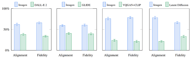 Imagen is on-par with original reference images for caption similarity.