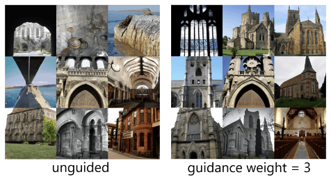 By magnifying the effect of the conditional gradient (i.e. making the “guidance weight” greater than 1), better samples can be obtained.