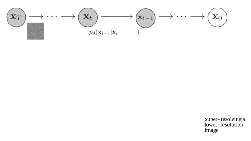 Diffusion Model (or “base model”) outputs 64x64 images.