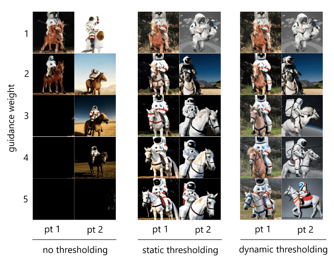 The effects of increasing the guidance weight for three models