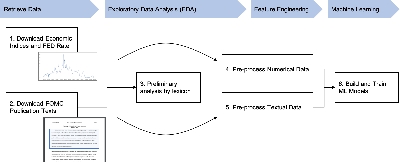 This project aims to apply NLP to those texts published by FOMC to find latent features. All data used in this analysis are publicly available.