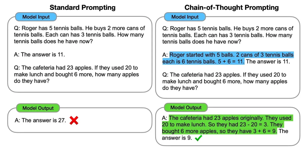 Chain-of-thought prompting represents an advanced technique for interacting with Large Language Models (LLMs) to solve complex tasks, from arithmetic to common sense reasoning. This method deploys a sequence of carefully constructed prompts that guide the model through a logical process or “chain of thought,” thereby allowing it to generate more accurate and insightful outputs. The primary advantage of this approach is that it decomposes the input and output into manageable units, providing a window for detailed interpretation and modification.