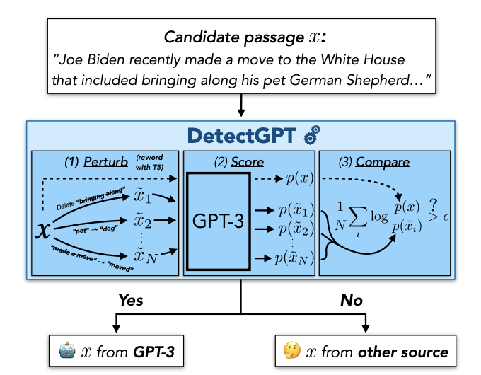 DetectGPT: Zero-shot Machine-Generated Text Detection with Random Perturbations#