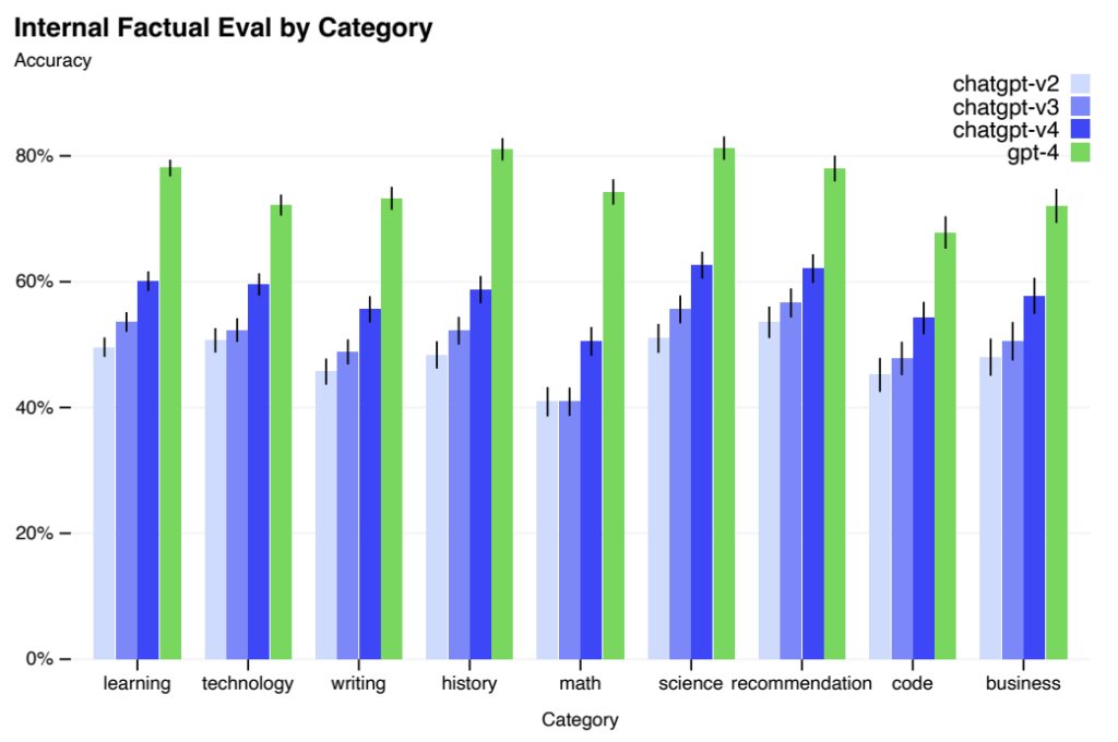 Fig. 138 Performance of GPT-4 on nine internal adversarially-designed factuality evaluations.#