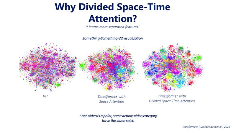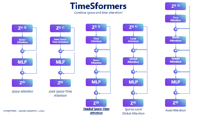 n 2021, Facebook researchers explored the possibility of applying the Vision Transformer architecture to videos, leading to the development of TimeSformers. The core idea is to divide a video into individual frames and process them using a similar procedure as for images. However, there is an essential distinction between TimeSformers and Vision Transformers: TimeSformers must take into account the temporal dimension of the video in addition to the spatial dimension.