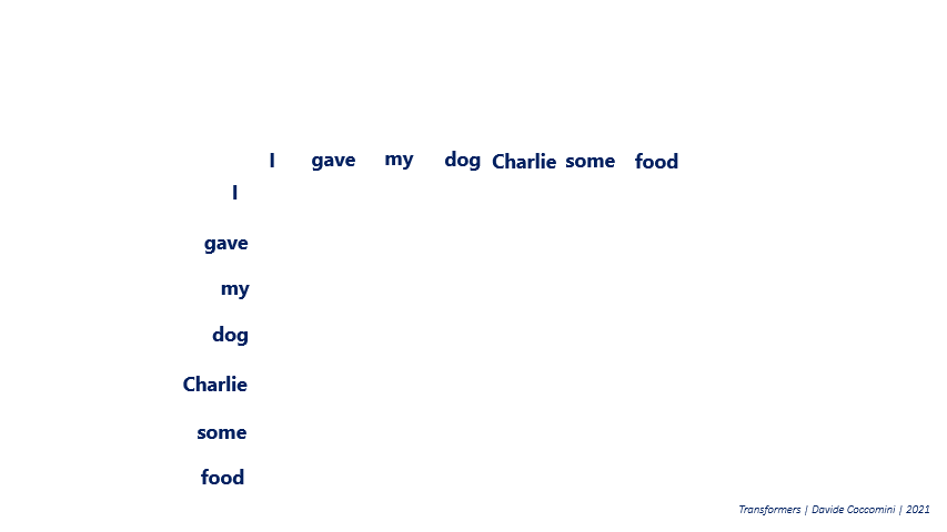 Similarly, we might want to determine the recipient of the action. By asking, “To whom did I give the food?”, the attention mechanism would identify the words “dog” and “Charlie” as crucial for understanding the recipient of the action.