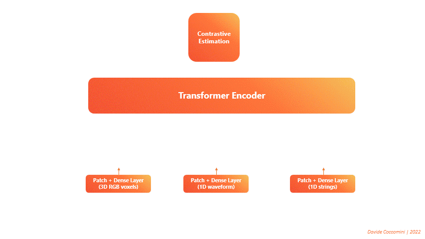 During the forward pass, the transformer takes in these sequences and generates three distinct sets of features, one for each type of input data. These features are then fed into a contrastive estimation block, which calculates a single loss and performs the backward pass. As a result, the model learns to minimize the loss by better managing and integrating information from all three data sources.