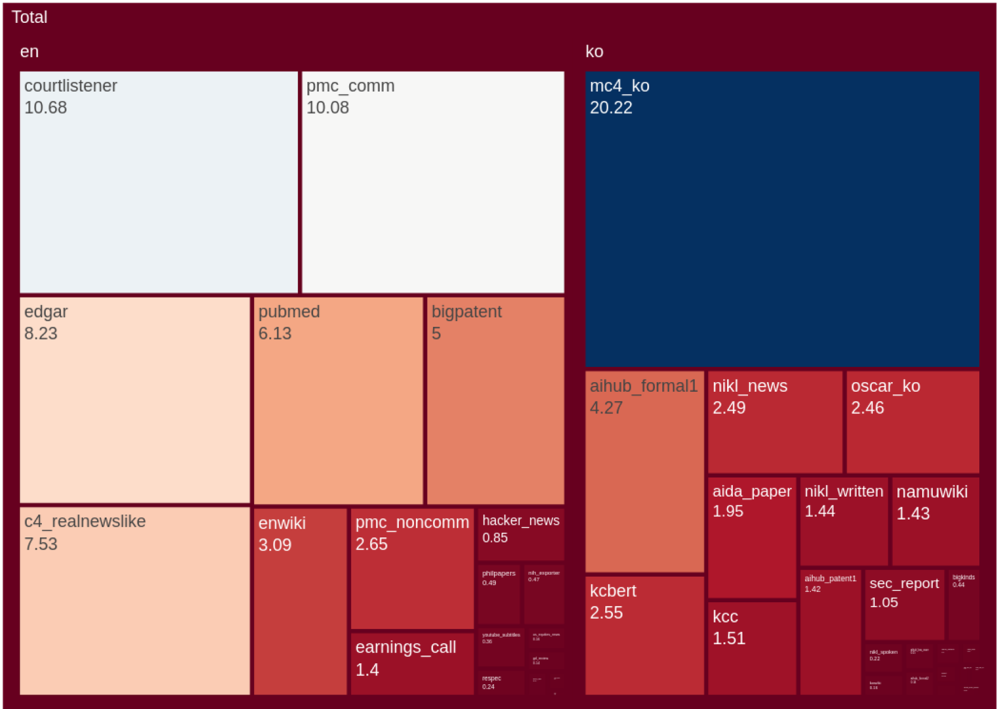 The eKorpkit Corpus is a large, diverse, and multilingual (Korean and English) dataset for language modeling. The total size of the dataset is 448.87 GiB, with 258.83 GiB in English and 190.04 GiB in Korean.