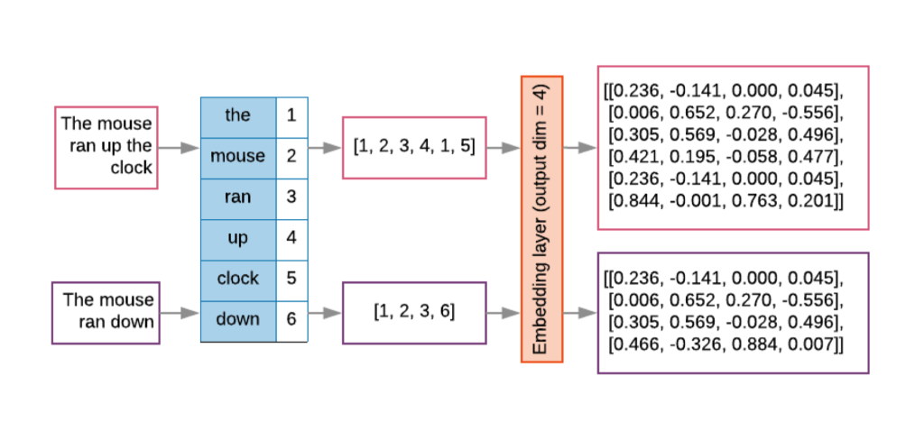 When it comes to neural networks, there’s a fascinating relationship between embedding layers and dense layers. In fact, an embedding layer can be seen as statistically equivalent to a fully-connected dense layer, provided we have one-hot vectors as input and a linear activation function.