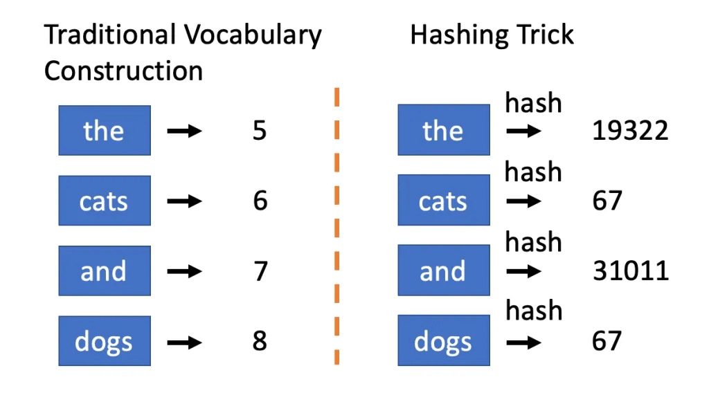 In the code snippet above, we transform our text data into a feature matrix with a fixed size of 16 (2**4) using the HashingVectorizer.