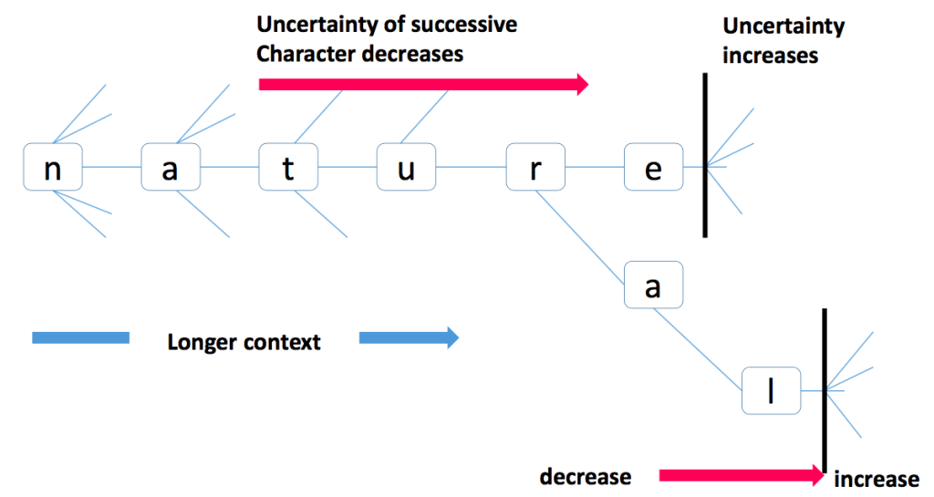 [Harris, 1970] said that if the uncertainty of successive tokens increases, the location is a word boundary.