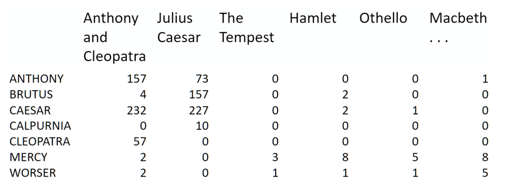 Term-document matrix: