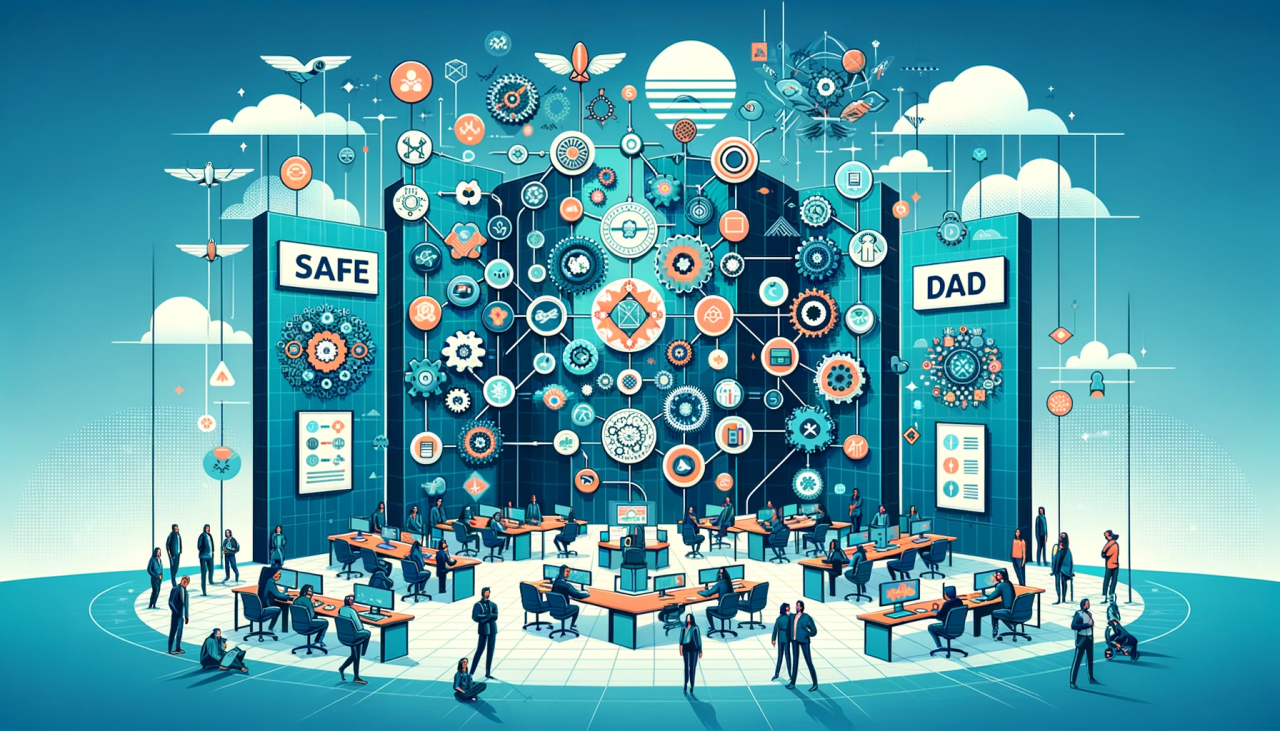 Frameworks for Scaling Agile have been developed to address these challenges. The Scaled Agile Framework (SAFe) provides a template for applying Agile and Lean practices at enterprise scale. Large-Scale Scrum (LeSS) is a framework that applies the principles and practices of Scrum in a large-scale context. The Disciplined Agile Delivery (DaD) framework provides a more disciplined approach to Agile by incorporating a range of Agile practices from Scrum, Kanban, and other methods, tailored to the organization’s context.